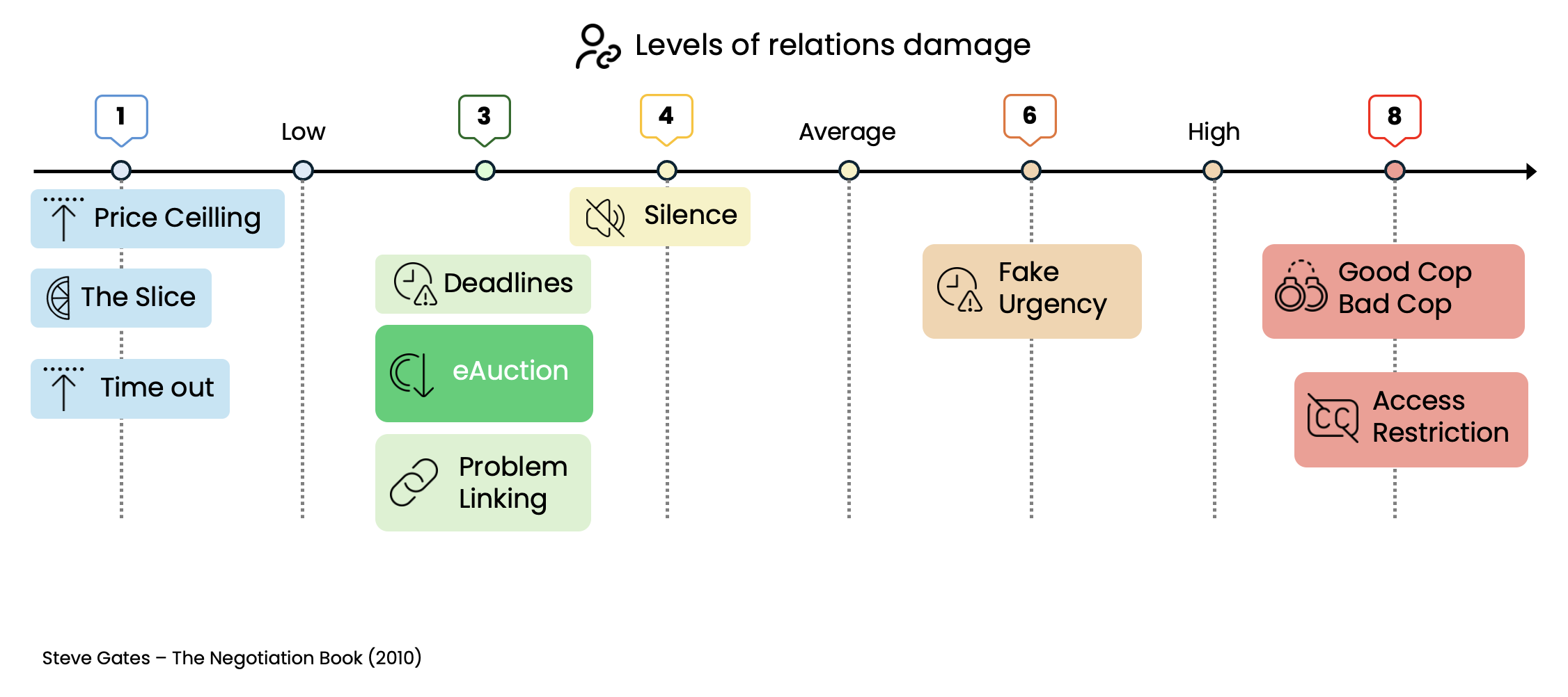 Interestingly, Gates rates eAuctions as relatively low in relationship erosion. They’re procedural, not personal. When well designed, they remove theatrics and let the market speak.